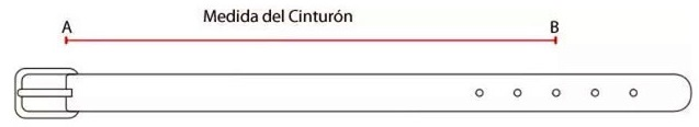 Para saber su medida guíese por el siguiente esquema, sea en cm o en pulgadas (inches) tome su cinturon y mídalo desde el punto A hasta el punto B siendo este el agujero donde usted esté actualmente se sienta más cómodo usandolo.